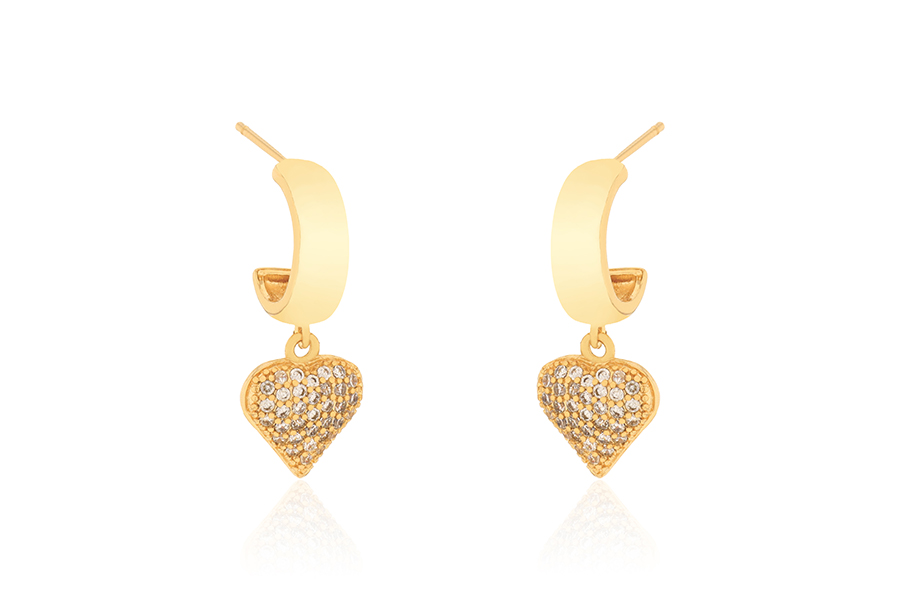 BRINCO BANHADO EM OURO, CORAÇÃO ZIRCÔNIA 6X6mm, PARA QUALQUER COR DE PEDRA