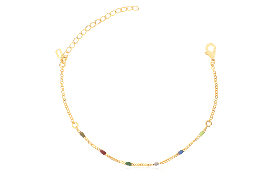 PULSEIRA BANHADA EM OURO, CORRENTE ELO CORDA 3mm ESPESSURA, 17cm COMPRIMENTO, EXTENSOR 5cm COMPRIMENTO E PESO 5,30g