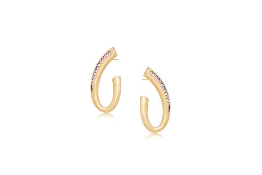 BRINCO BANHADO EM OURO, 23mm COMPRIMENTO COM ZIRCÔNIAS BRANCAS OU COLORIDAS