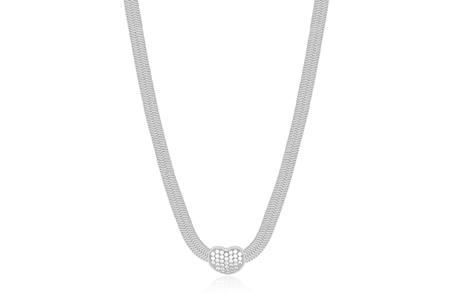 GARGANTILHA EM PRATA, ELO VENEZIANA 0,60mm, 40cm COMPRIMENTO, EXTENSOR 5cm, TRÊS CORAÇÕES, COM BANHO DE RÓDIO BRANCO, COLEÇÃO AURA