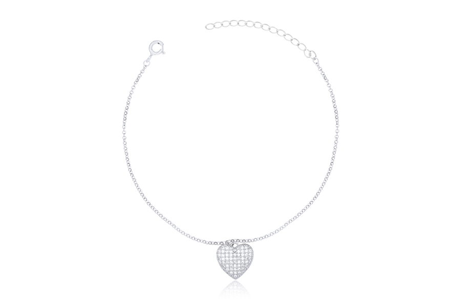 PULSEIRA EM PRATA, ELO PORTUGUÊS 1,30mm, 16cm COMPRIMENTO, EXTENSOR 5cm, COM BANHO DE RÓDIO BRANCO, COLEÇÃO AURA