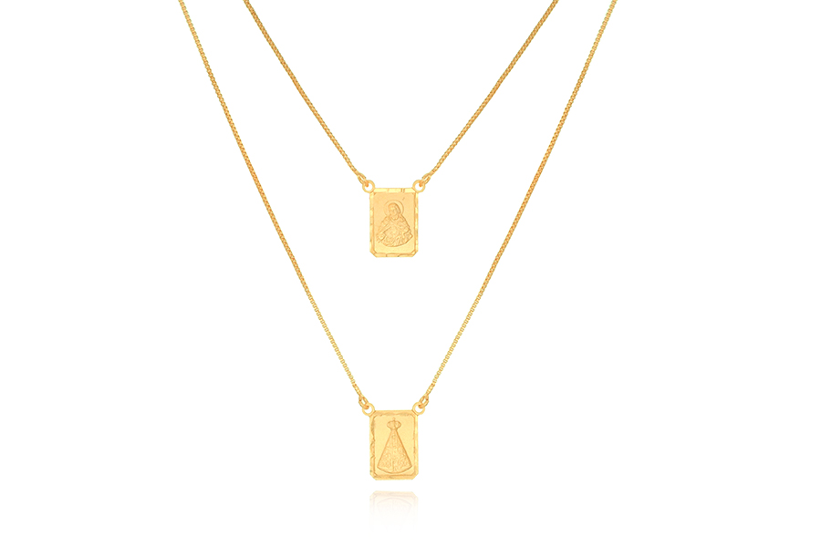 GARGANTILHA BANHADA EM OURO, ESCAPULÁRIO DUPLO LINHA TRADICIONAL