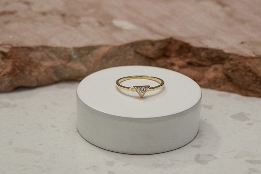 ANEL BANHADO EM OURO, CORAÇÃO E CÍRCULO