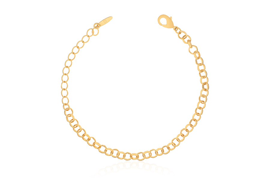 PULSEIRA BANHADA EM OURO, CORRENTE ELO CORDA 3mm ESPESSURA, 17cm COMPRIMENTO, EXTENSOR 5cm COMPRIMENTO E PESO 5,30g