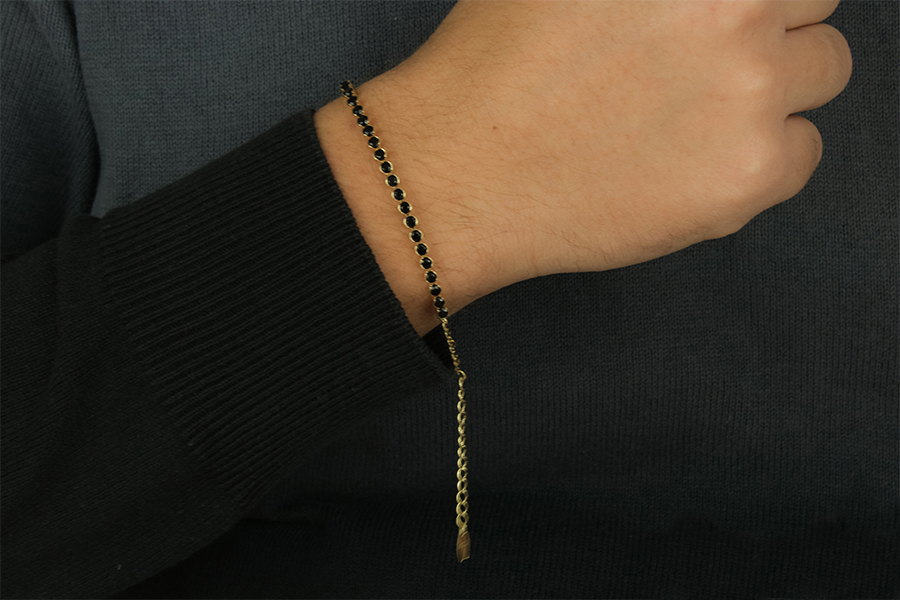 PULSEIRA BANHADA EM OURO, ELO CORDA 2,50mm, 17cm COMPRIMENTO, EXTENSOR 5cm COMPRIMENTO E SÃO BENTO 18mm DIÂMETRO