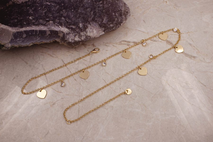 GARGANTILHA BANHADA EM OURO, VENEZIANA 0,80mm, 45cm COMPRIMENTO E CORAÇÃO 12,50mm LARGURA