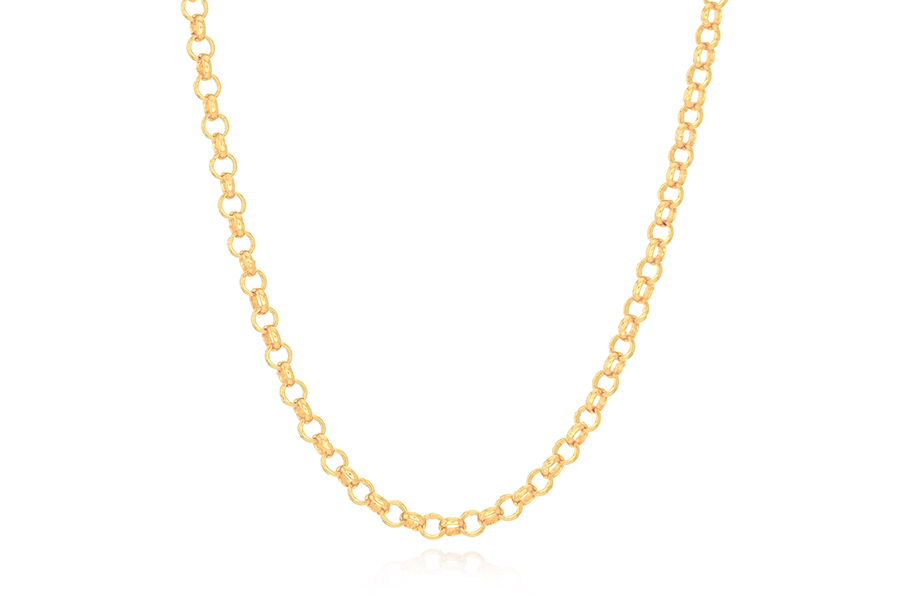 CORRENTE BANHADA EM OURO, ELO PORTUGUÊS 3mm, 40cm COMPRIMENTO, EXTENSOR 5cm E PESO 6g
