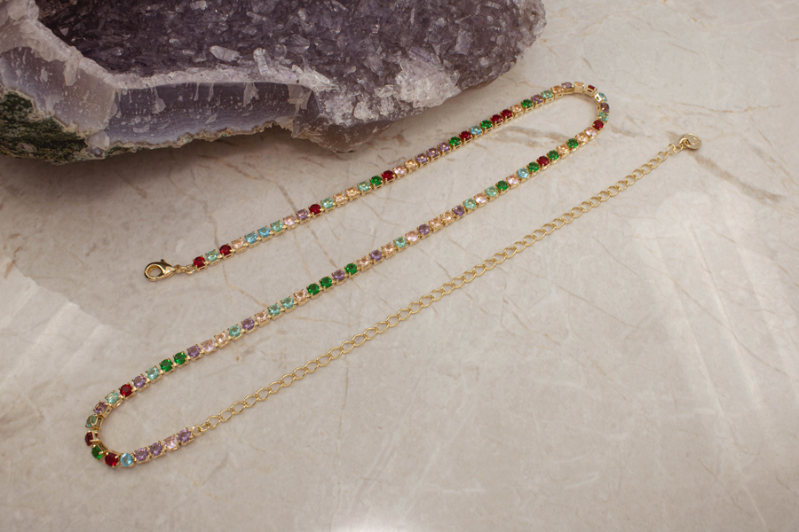 GARGANTILHA BANHADA EM OURO, CRISTAL FUSION GOTA 25x18mm, ELO 1,50mm, 75cm COMPRIMENTO, QUALQUER COR
