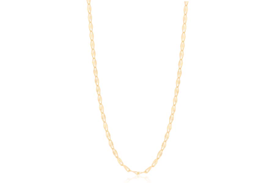 CORRENTE BANHADA EM OURO, ELO PORTUGUÊS 2,50mm, 45cm COMPRIMENTO, EXTENSOR 5cm COMPRIMENTO E PESO 3,80g