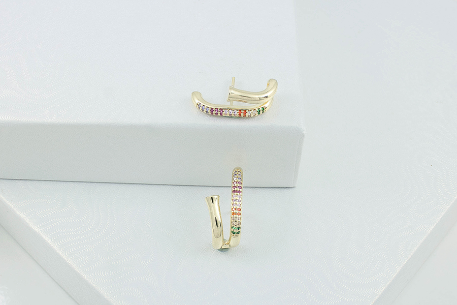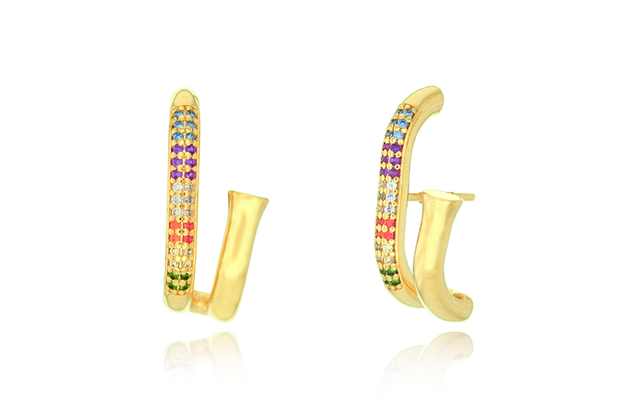 BRINCO BANHADO EM OURO CRISTAL TRAPÉZIO 14X13X3mm