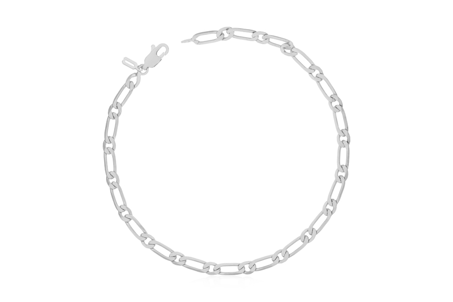 PULSEIRA BANHADA EM RÓDIO BRANCO, ELO 4,50mm LARGURA, 16cm COMPRIMENTO E PONTO DE LUZ 8mm