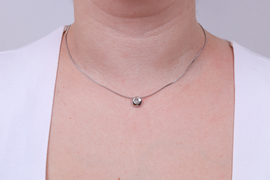 GARGANTILHA BANHADA EM RÓDIO BRANCO, ELO PORTUGUÊS 2mm, 40cm COMPRIMENTO E NOVE OLHOS GREGOS 4,50mm DIÂMETRO