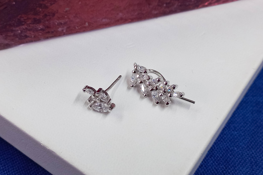 BRINCO EM PRATA, ZIRCÔNIAS QUADRADA, GOTA E REDONDA, COM BANHO DE RÓDIO BRANCO, COLEÇÃO AURA