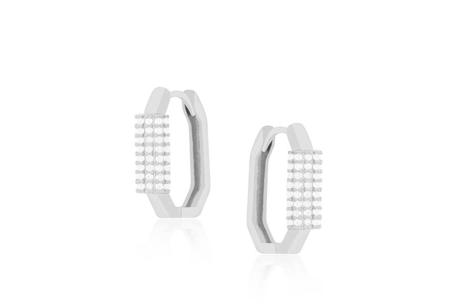 BRINCO EM PRATA, ZIRCÔNIAS QUADRADA, GOTA E REDONDA, COM BANHO DE RÓDIO BRANCO, COLEÇÃO AURA