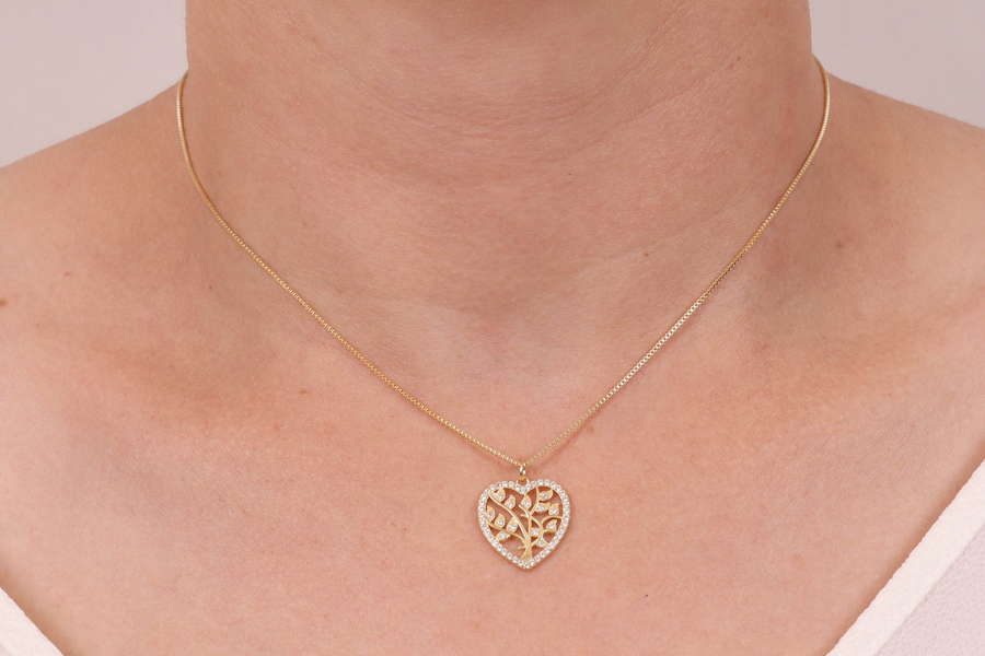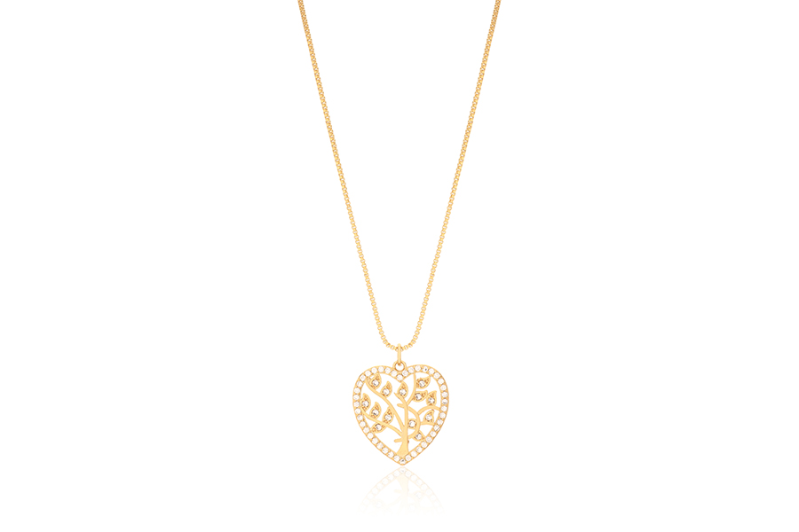 GARGANTILHA BANHADA EM OURO, ELO 1,50mm ESPESSURA, DUPLO PONTO DE LUZ 5mm E CORAÇÃO PATA 15,50mm LARGURA