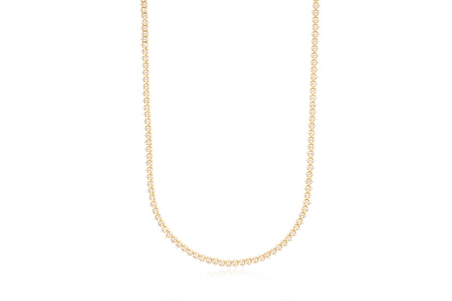 GARGANTILHA BANHADA EM OURO, CRISTAL REDONDO 8mm, VENEZIANA 0,80mm, 40cm COMPRIMENTO E EXTENSOR 5cm COMPRIMENTO