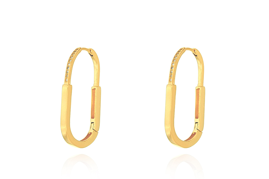 BRINCO BANHADO EM OURO, ARGOLA OVAL VAZADA, 32mm ALTURA, LISO OU ACETINADO, PROVIN OPAC