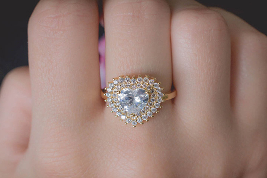 ANEL BANHADO EM OURO, CORAÇÃO 5,70mm ALTURA