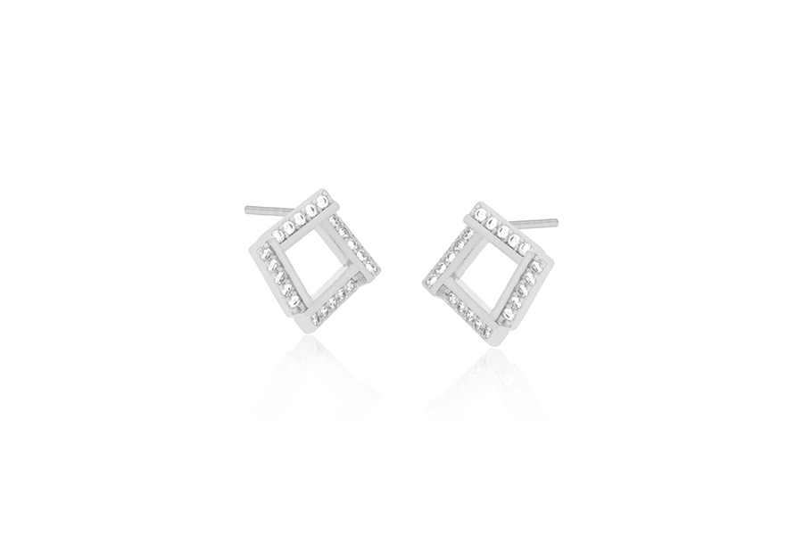 BRINCO EM PRATA, ZIRCÔNIAS QUADRADA, GOTA E REDONDA, COM BANHO DE RÓDIO BRANCO, COLEÇÃO AURA