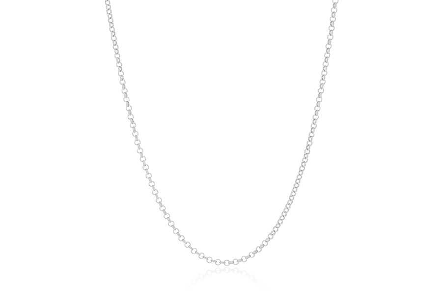 GARGANTILHA BANHADA EM RÓDIO BRANCO, ELO PORTUGUÊS 2mm, 40cm COMPRIMENTO E NOVE OLHOS GREGOS 4,50mm DIÂMETRO