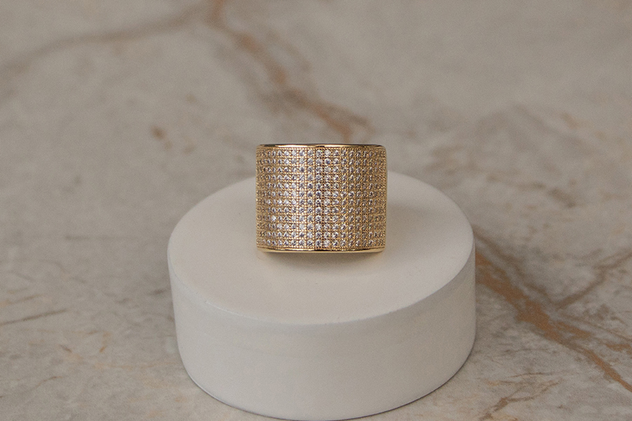 ANEL BANHADO EM RÓDIO BRANCO, COM 130 ZIRCÔNIAS