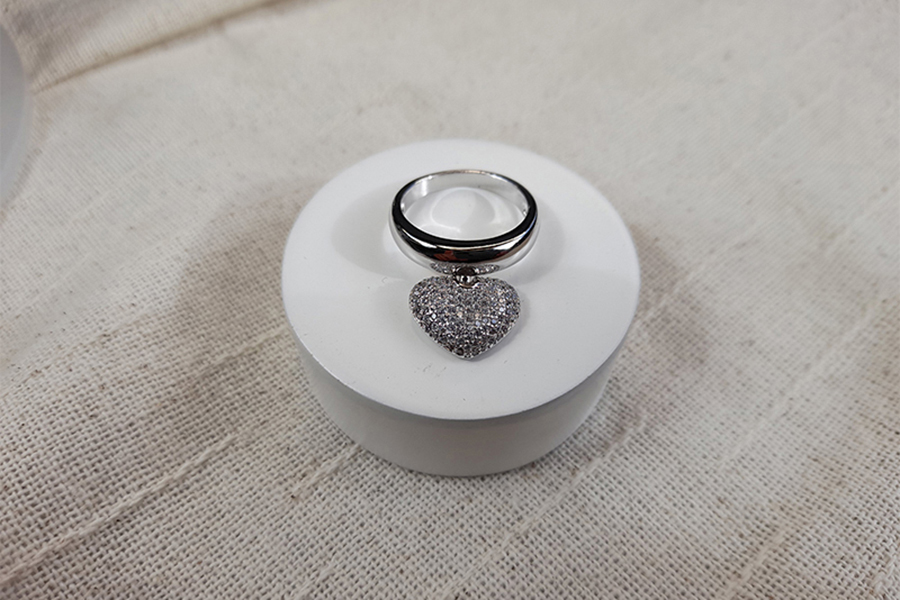 ANEL BANHADO EM PRATA LEVE, FORMATO DE CORAÇÃO