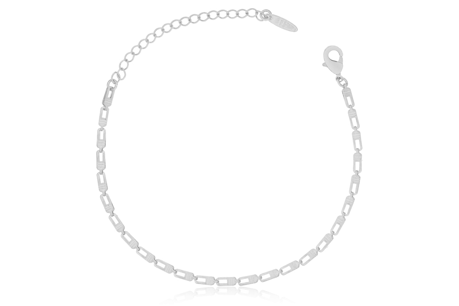 TORNOZELEIRA BANHADA EM PRATA LEVE, CORRENTE ELO 2,40mm LARGURA, 22cm COMPRIMENTO, EXTENSOR 5cm E PESO 2,60g