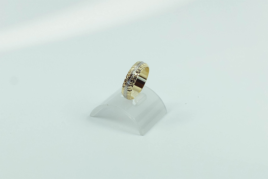 ANEL BANHADO EM OURO, APARADOR DUPLO, COM 2 FILEIRAS DE ZIRCÔNIAS CADA
