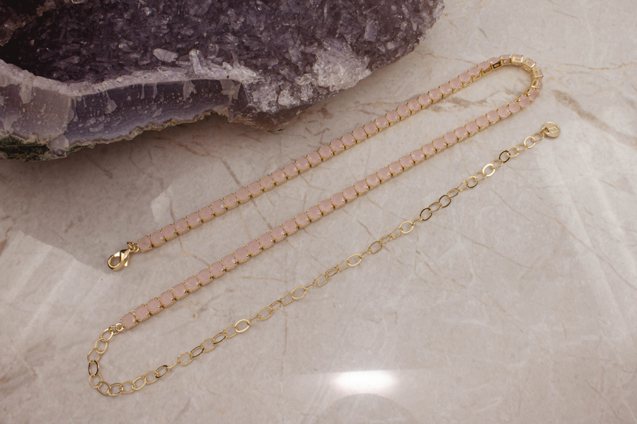 GARGANTILHA BANHADA EM OURO, CRISTAL FUSION GOTA 25x18mm, ELO 1,50mm, 75cm COMPRIMENTO, QUALQUER COR