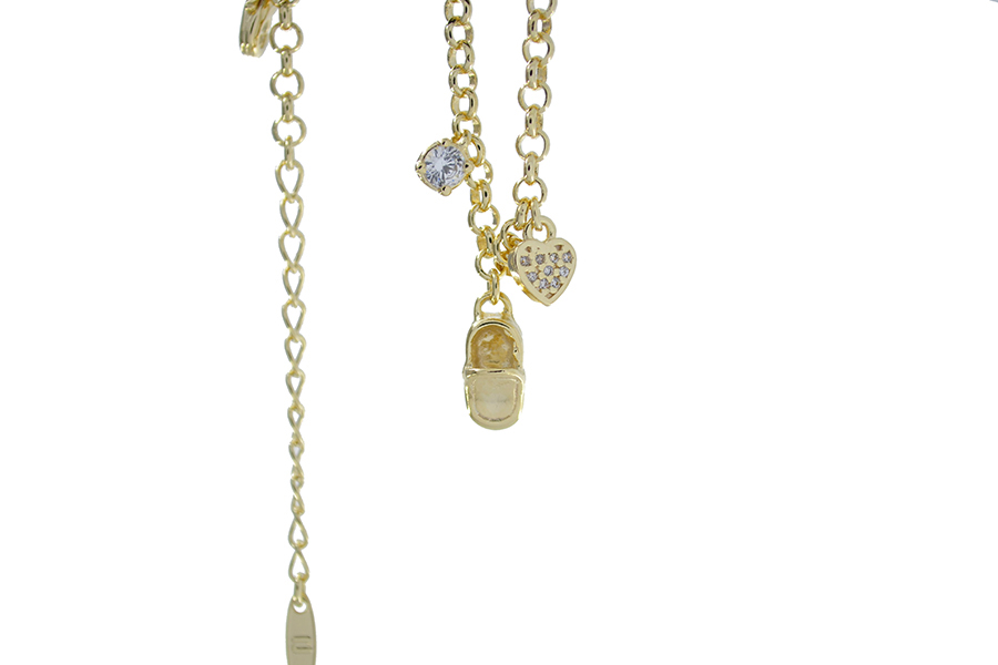 PULSEIRA INFANTIL BANHADA EM OURO, CORRENTE ELO 3,10mm LARGURA E 15cm COMPRIMENTO