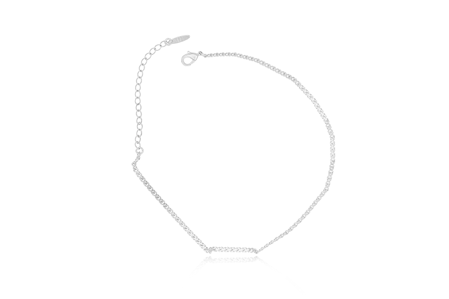 TORNOZELEIRA BANHADA EM PRATA LEVE, CORRENTE ELO SINGAPURA 2,10mm LARGURA, 22cm COMPRIMENTO E PESO 2,10g