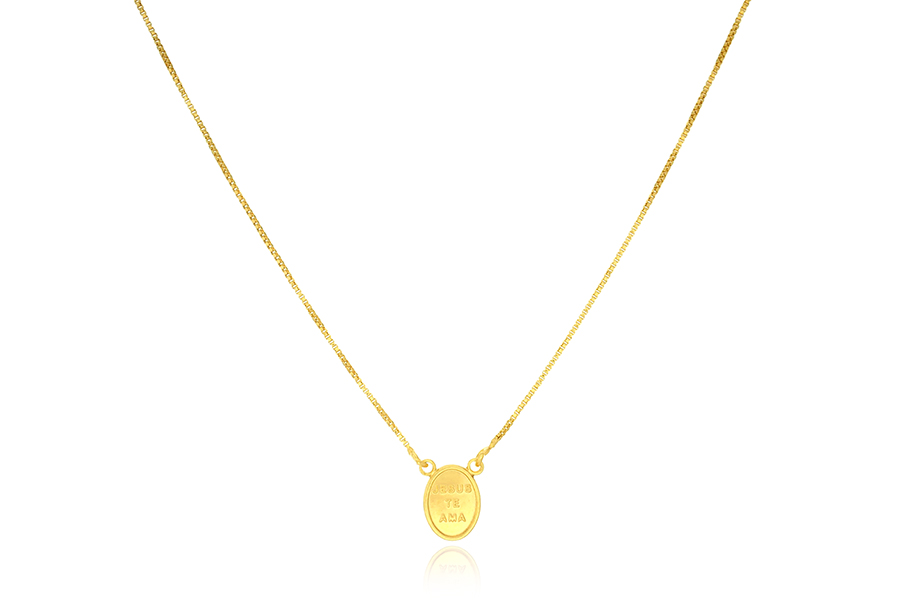 GARGANTILHA BANHADA EM OURO, VENEZIANA 0,80mm TRIPLA, CORAÇÃO 8mm LARGURA, OLHO GREGO 4mm E PONTO DE LUZ 3,50mm