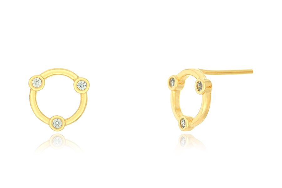 BRINCO BANHADO EM OURO, TRIÂNGULO 17mm ALTURA, 12,50mm LARGURA E ZIRCÔNIA 4,50mm DIÂMETRO, QUALQUER COR