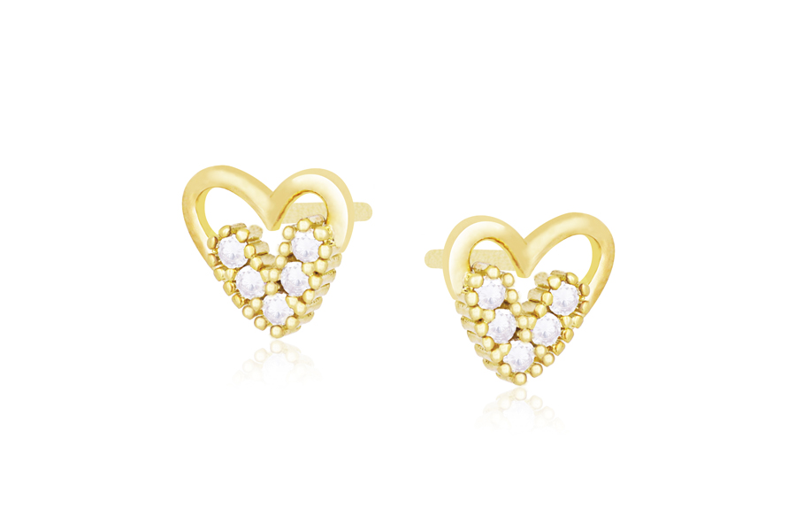 BRINCO BANHADO EM OURO, CORAÇÃO ZIRCÔNIA 6X6mm, PARA QUALQUER COR DE PEDRA