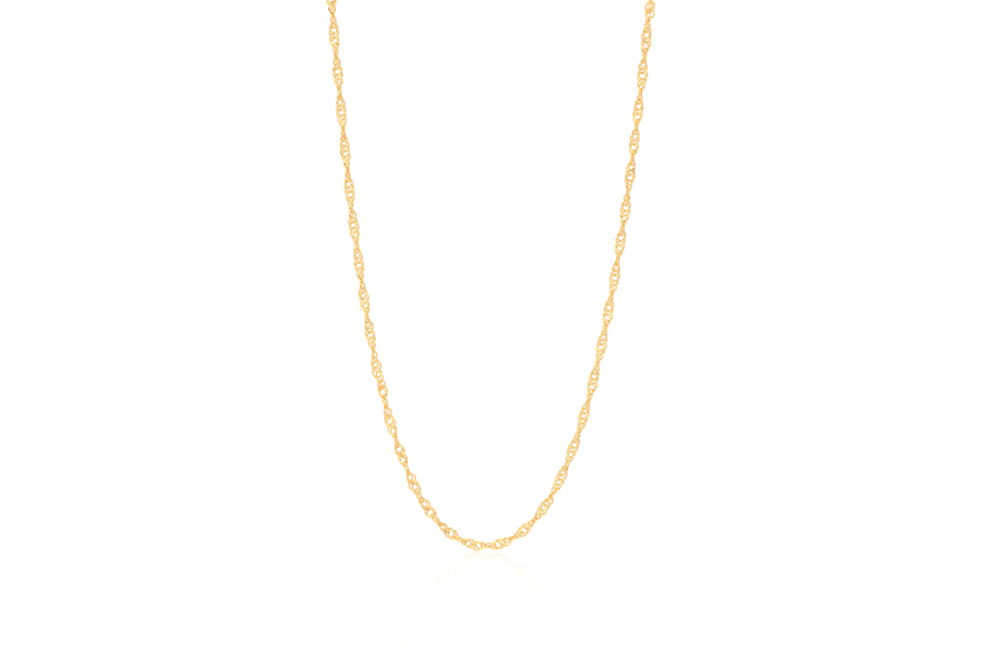 CORRENTE BANHADA EM OURO, ELO PORTUGUÊS 2,50mm, 45cm COMPRIMENTO, EXTENSOR 5cm COMPRIMENTO E PESO 3,80g