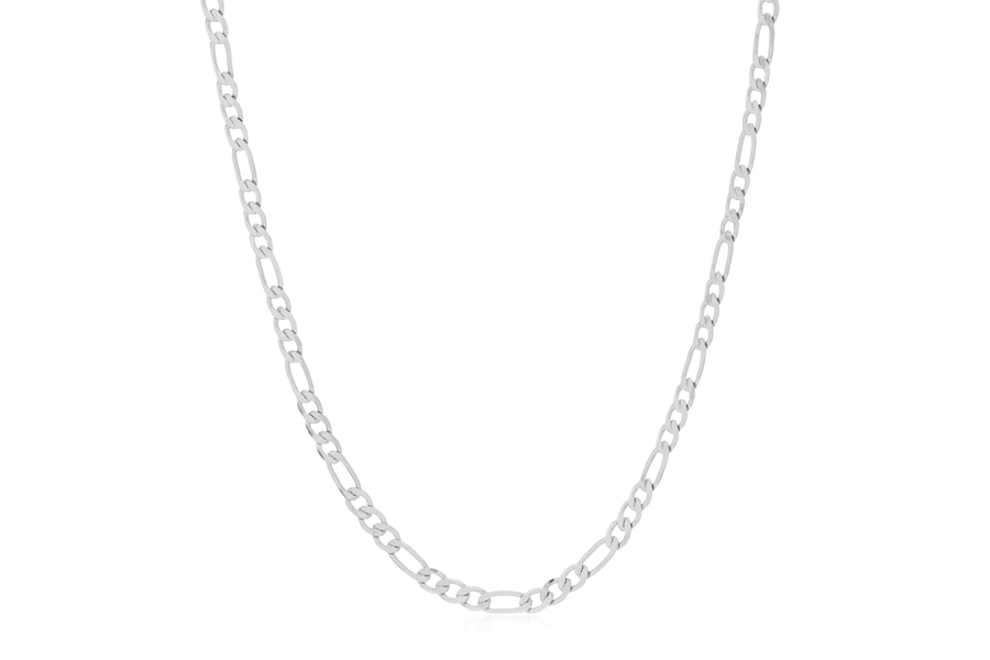 GARGANTILHA BANHADA EM RÓDIO BRANCO, ELO PORTUGUÊS 2mm, 40cm COMPRIMENTO E NOVE OLHOS GREGOS 4,50mm DIÂMETRO