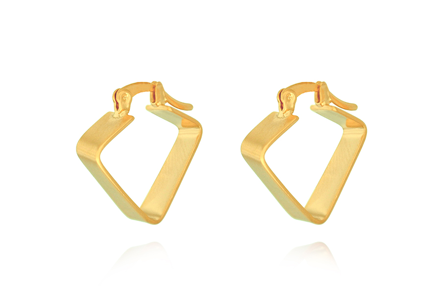 BRINCO BANHADO EM OURO, TRIÂNGULO 17X9mm, LISO OU ACETINADO