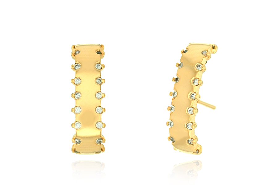 BRINCO BANHADO EM OURO, 23mm COMPRIMENTO COM ZIRCÔNIAS BRANCAS OU COLORIDAS