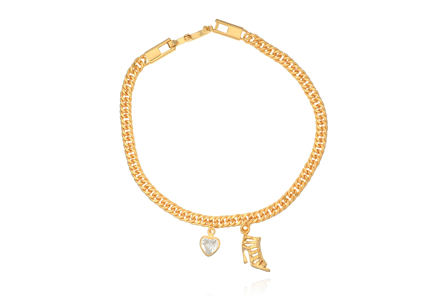 PULSEIRA BANHADA EM OURO, ELO PORTUGUÊS 3mm E 1,50mm, CORAÇÃO 7mm LARGURA, 17cm COMPRIMENTO