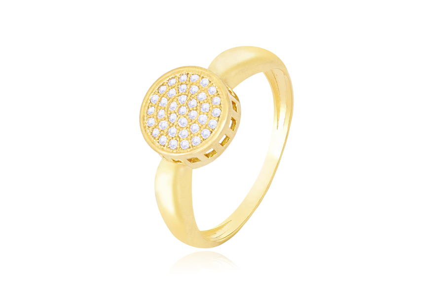 ANEL BANHADO EM OURO, SOLITÁRIO 10mm, ESTOQUE TRADICIONAL