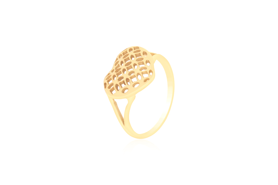 ANEL BANHADO EM OURO, CORAÇÃO E CÍRCULO