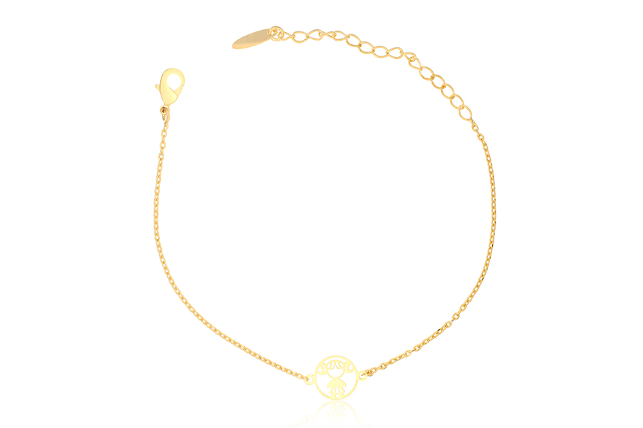 PULSEIRA BANHADA EM OURO, ELO PORTUGUÊS 3mm, ELO CORAÇÃO 4,20mm LARGURA, PINGENTE CORAÇÃO 11mm LARGURA COM MENINA